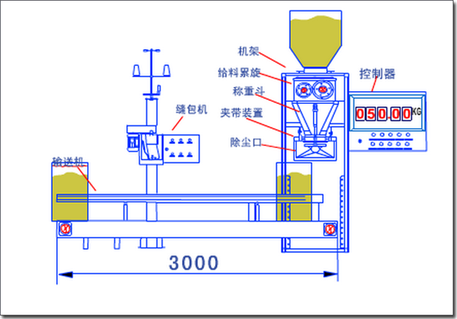 自動礦粉包裝秤采用高精度的傳感器,稱重系統是電子秤式計量,采用液晶面板數字調校及參數設定,具有重量累計顯示及自動去皮、自動校零、自動落差修正等功能,靈敏度高,抗干擾能力強。自動礦粉包裝秤集自動稱重、拍打震實、輸送、縫包為一體,具有結構緊湊,造型新穎,操作方便等優點。